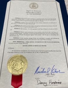 Governor Kehoe signed a proclamation declaring October as Jewish Heritage Month in Missouri. This event, held at the Capitol Rotunda, honored and recognized the many contributions of the Jewish community to the state of Missouri.